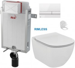 GEBERIT KOMBIFIXBasic vč. bílého tlačítka DELTA 50 + WC JIKA LYRA PLUS RIMLESS + SEDÁTKO DURAPLAST SLOWCLOSE (110.100.00.1 50BI LY2)