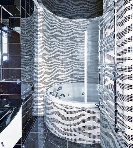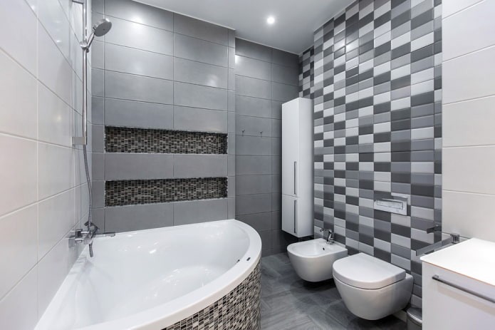 - obklady v kombinaci šedá a bílá pro dynamičtější vzhled,