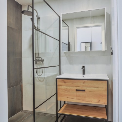 V inspiracích sledujte hlavně kombinace stěn, rámů, baterií a světel. Právě ty definují industriální charakter nejvíc. Vybavení pro takovou koupelnu pořídíte v našem e-shopu.