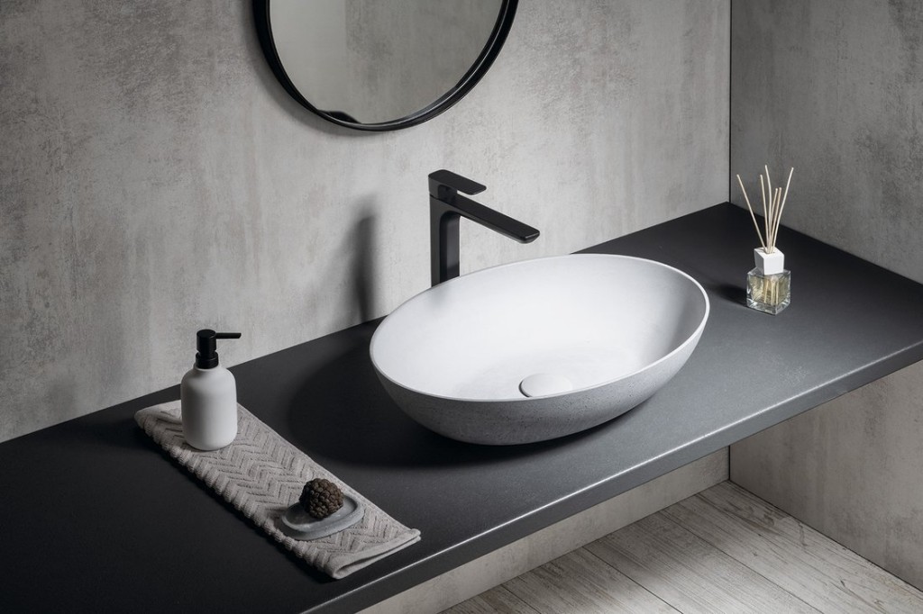 - betonové umyvadlo nebo umyvadlo z kamene / dekoru kamene,