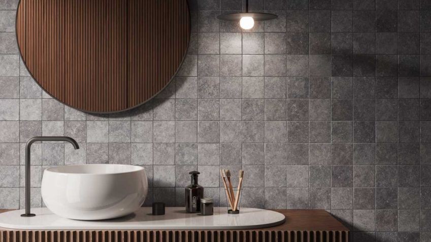 - obklady v dekoru kamene ve světlém nebo tmavém tónu,