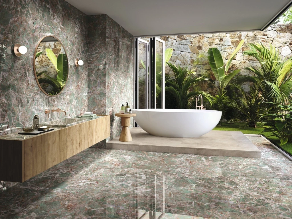 V inspiracích sledujte hlavně kombinaci kamene se světlem a dřevem. Právě to rozhoduje o tom, do jaké míry bude koupelna působit útulně a vzdušně.