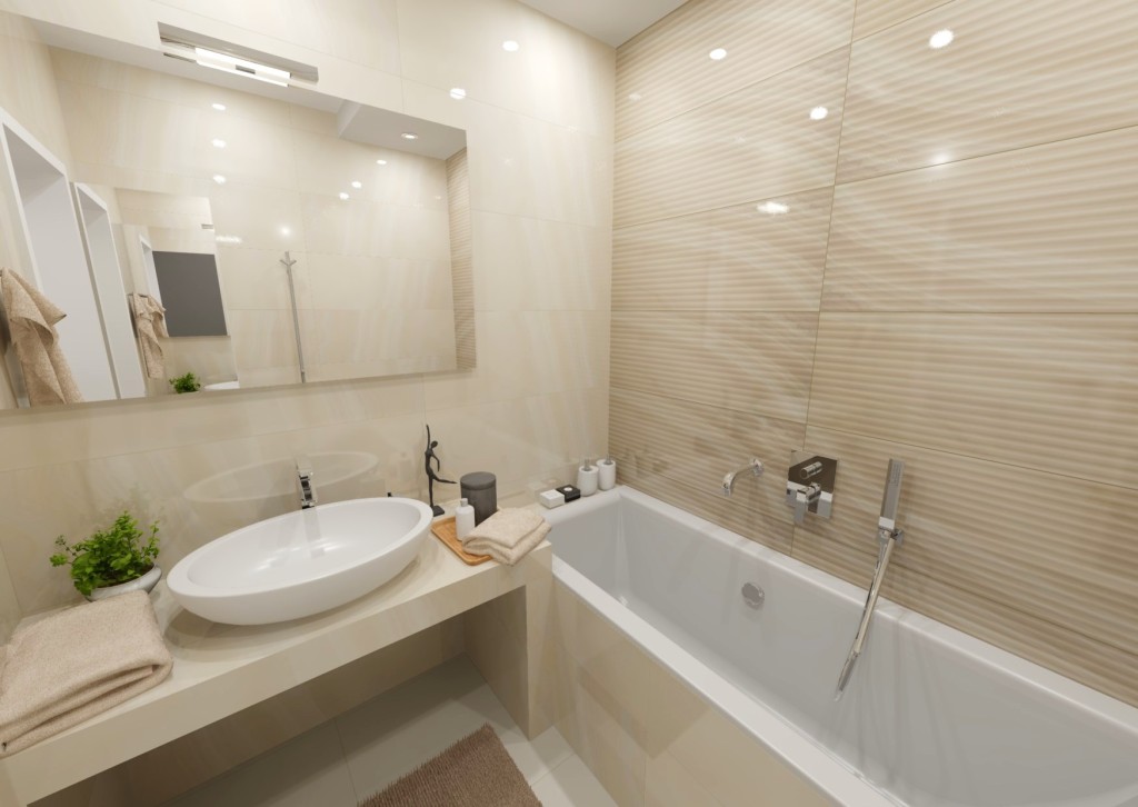 - práce se zrcadly a osvětlením, aby koupelna působila větší.