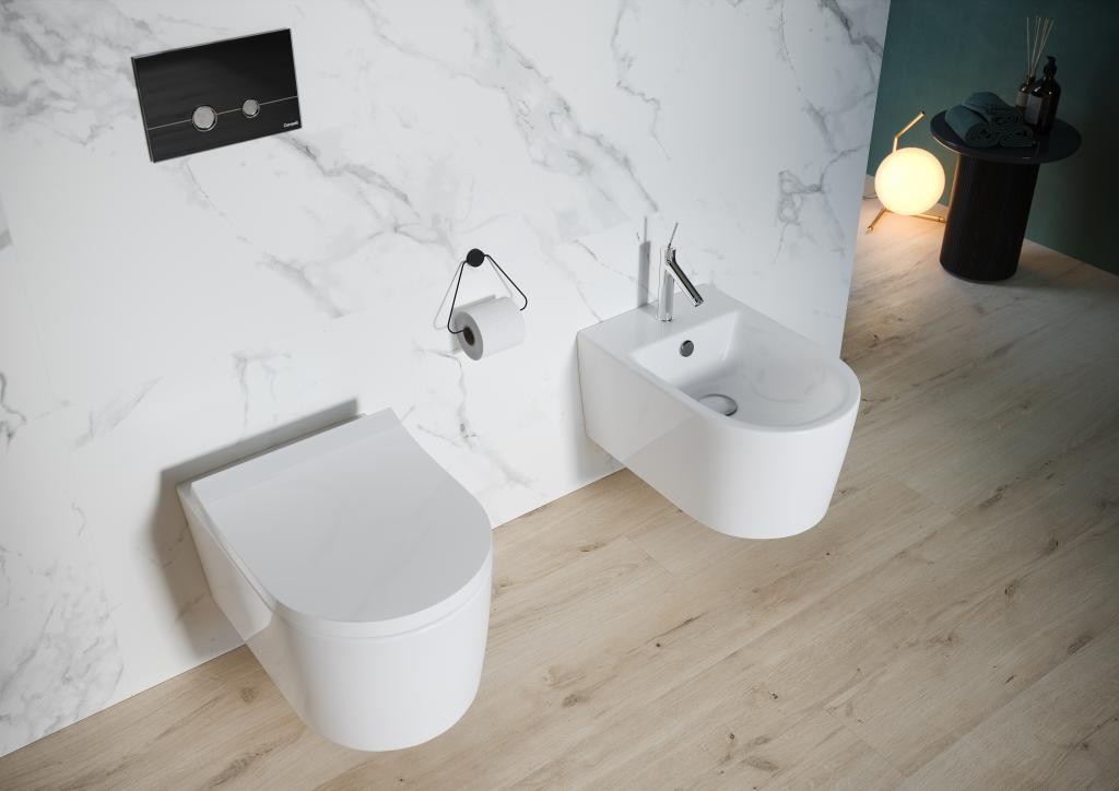 Pokud to rozměry vaší koupelny dovolují, doporučujeme pořídit si k WC také samostatný bidet. Stejně jako u WC, i zde máte na výběr mezi volně stojícím a závěsným. V kombinaci se závěsným wc bude harmonicky fungovat právě závěsný bidet. Výhodou je jeho pořizovací cena, která je v porovnání s elektronickými bidety nízká. Závěsný bidet ovládáte bidetovou vodovodní baterií. Mějte na paměti, že umyvadlo, vana i bidet by měly mít konzistentní design, proto i pro něj vybírejte vodovodní baterii stejné série.