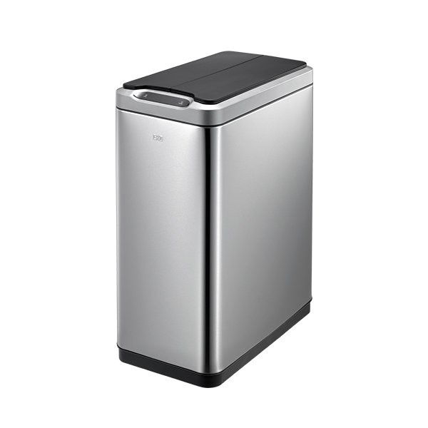 Bezdotykový odpadkový koš z ušlechtilé nerezové oceli s dvoukřídlým víkem šetřící prostor. Koš se automaticky otevře po přiblížení ruky či předmětu nad víko, tento způsob je nejhygieničtějším řešením pro vaši domácnost. Nerezová ocel disponuje povrchovou úpravou proti otiskům prstů. Koš navíc obsahuje technologii Soft Close, která umožňuje tiché a plynulé dovírání obou vík.