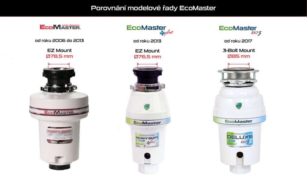 Není určeno pro hrdla3 Bolt MountØ 85mm u modelů EcoMaster EVO3 nebo ostatních InSinkErator, Wave atd.Funkčnost není zaručená také u kopií nebo podobných drtičů výše uvedených kompatibilních modelů.
