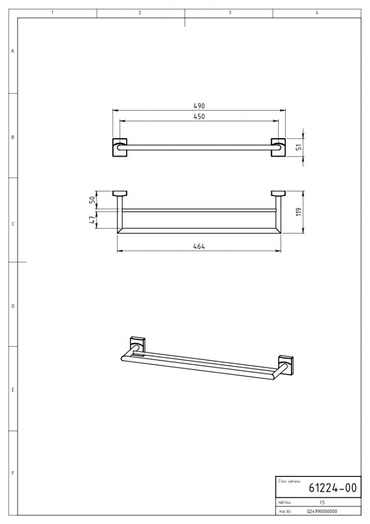 Dvojitý držák ručníků 500mm chromový. Montáž lepením nebo vrtáním.Parametry
