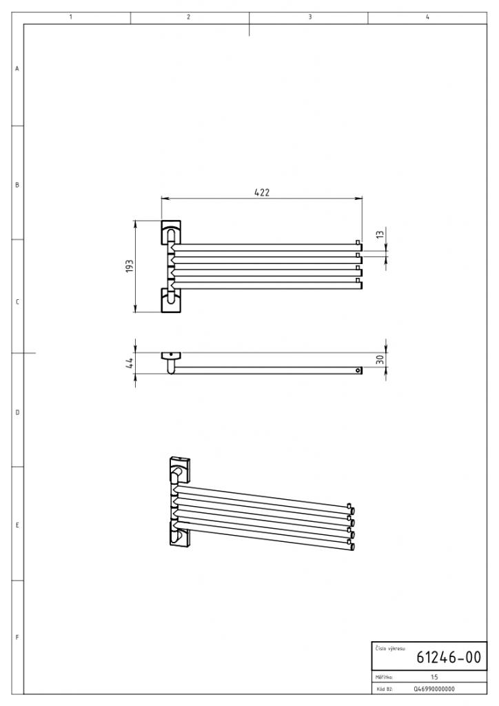Čtyřramenný držák ručníků chromový. Montáž lepením nebo vrtáním.Parametry