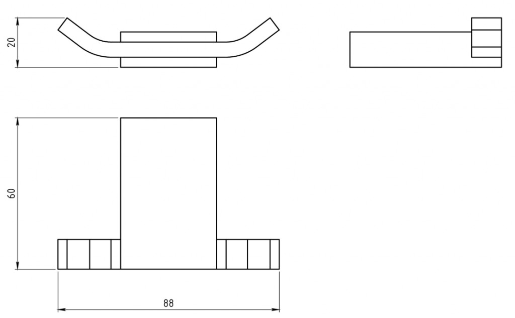 Chromový 2-háček - montáž vrtáním.Parametry
