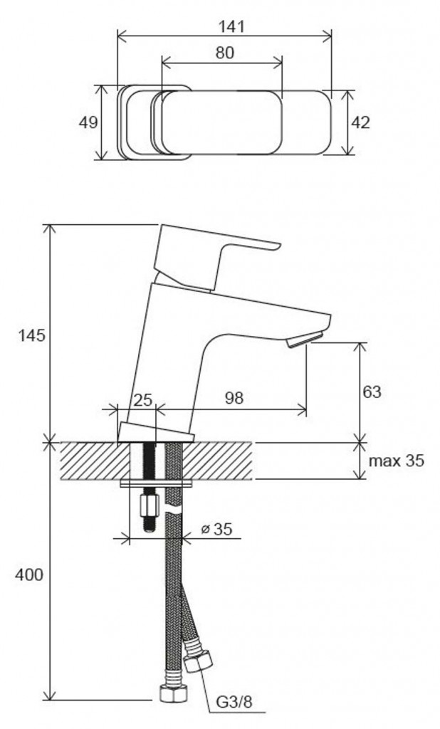 - připojovací hadičky: flexibilní 400 mm, průměr G3/8