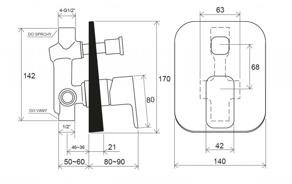 - přepínač vana / sprcha s aretací (přepínač se nevypne ani při poklesu tlaku vody)