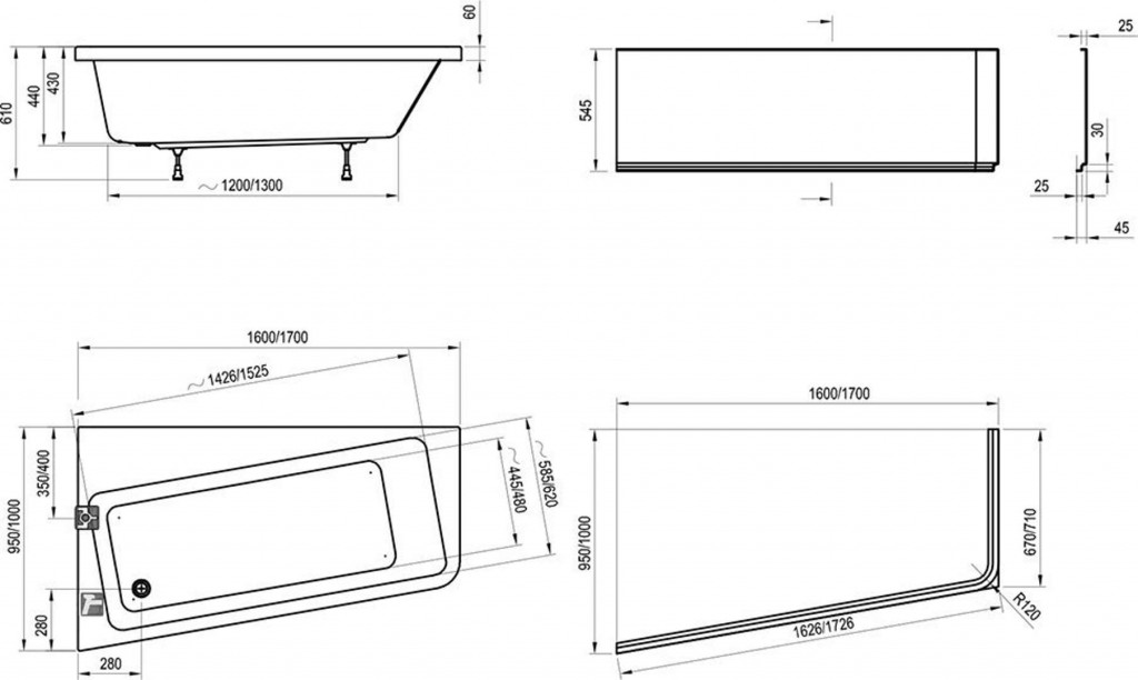 - instalace: na asymetrickou vanu 10° 160x95 P