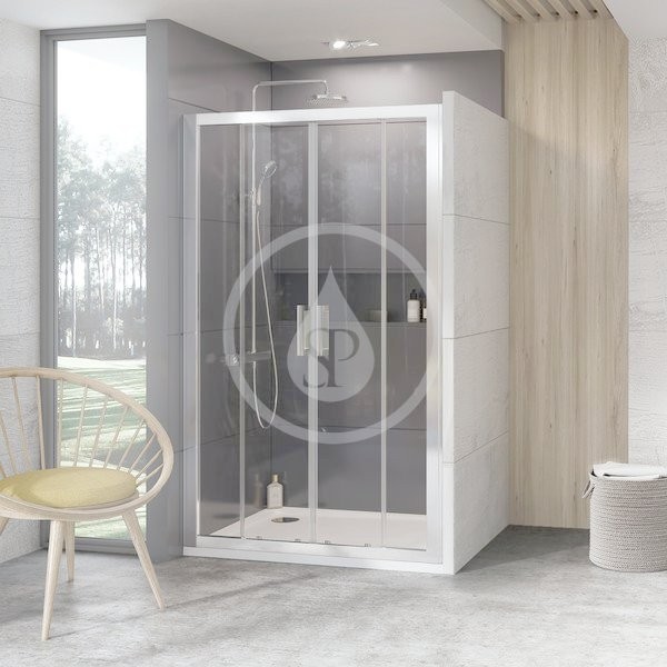 - instalace: 2 pevné a 2 posuvné díly, montáž do obloženého rohu/niky na sprchovou vaničku nebo přímo na podlahu se zabudovaným odtokovým žlabem či podlahovou vpustí