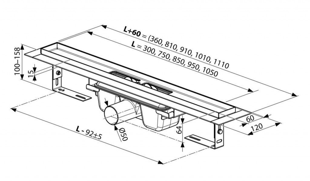 - zdvojená zápachová uzávěra, výška: 50 mm