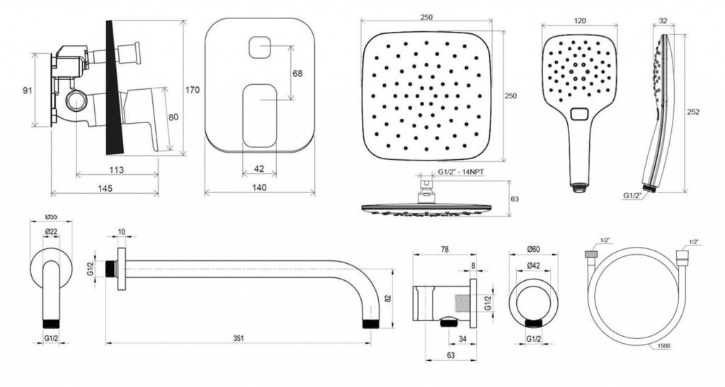 Sprchový podomítkový set TD F 090.21BL obsahuje