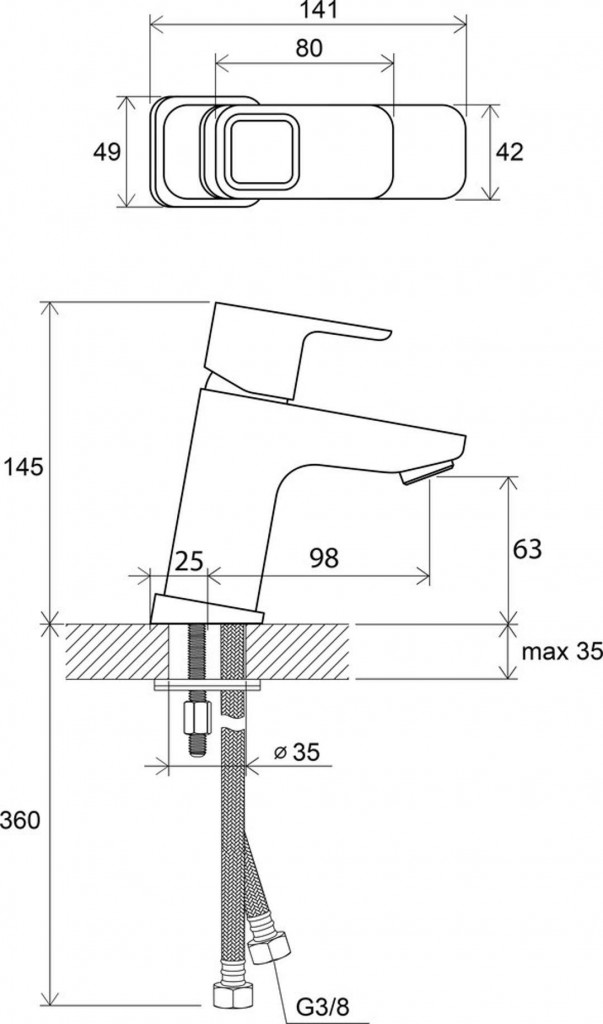 - připojovací hadičky: flexibilní 400 mm, průměr G3/8