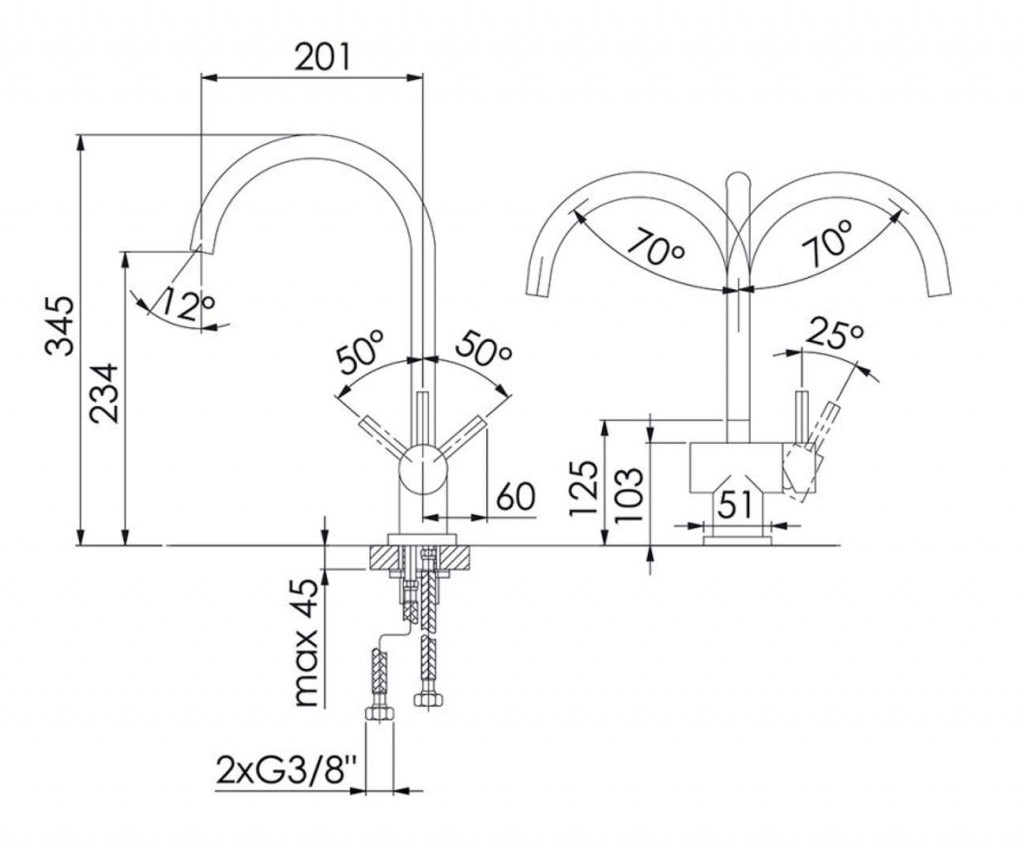- 2x flexibilní hadičky G 3/8"