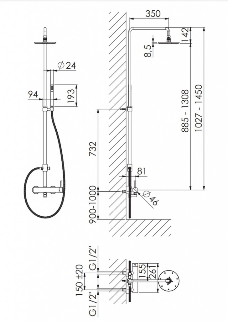 - rozteč 150 mm