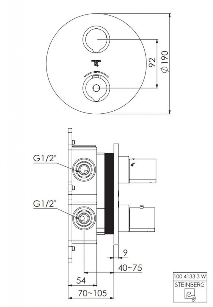 Sprchová termostatická baterie pod omítku, bez tělesa