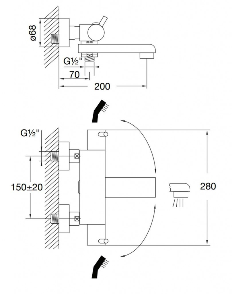 - otočný výtok s funkcí přepínače vana/sprcha
