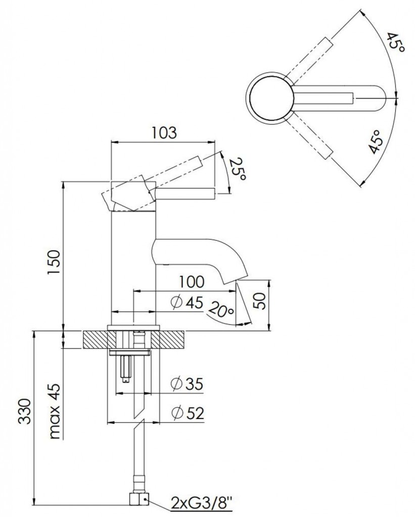 Umyvadlová páková baterie bez výpusti