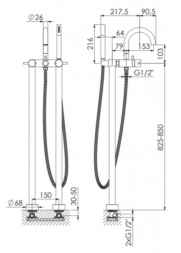 - s držákem sprchy, sprchovou hadicí 1500 mm a tyčovou ruční sprchou