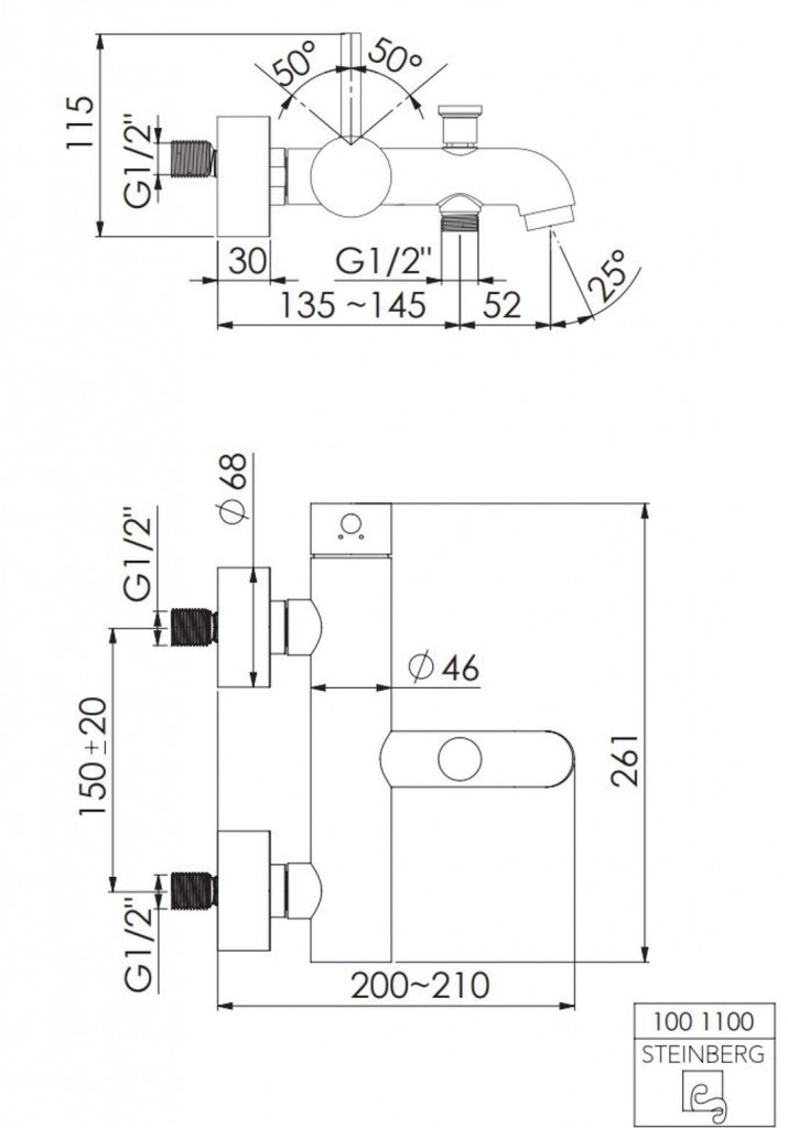 Páková vanová nástěnná baterie