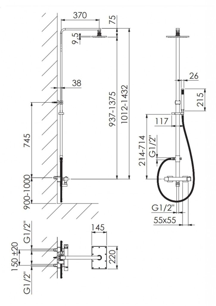 sprchovou tyč, držák sprchy