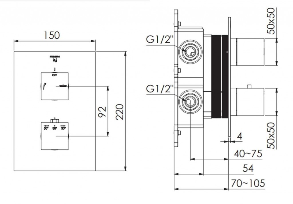Sprchová termostatická baterie pod omítku, bez tělesa