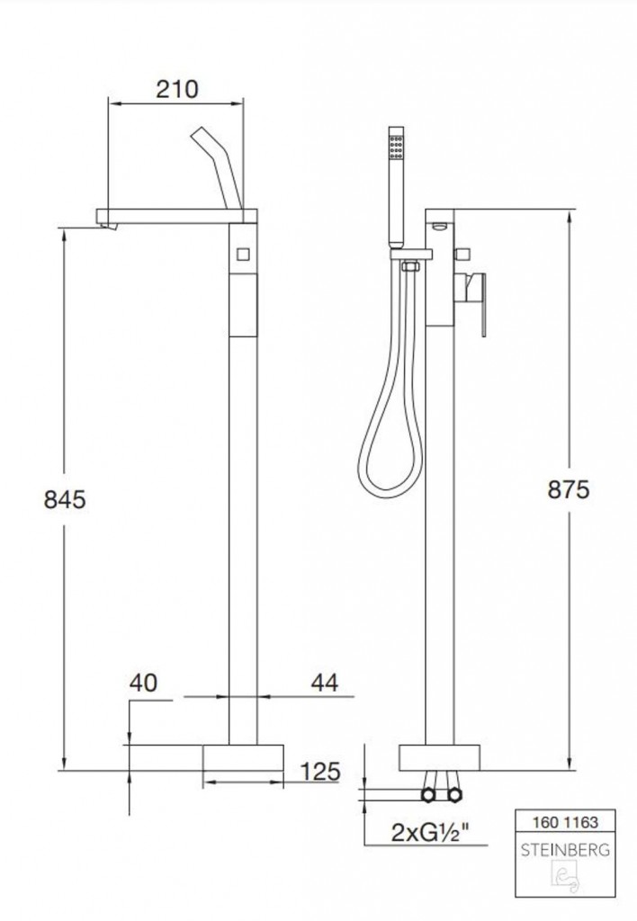 - s držákem sprchy, sprchovou hadicí 1500 mm a tyčovou ruční sprchou