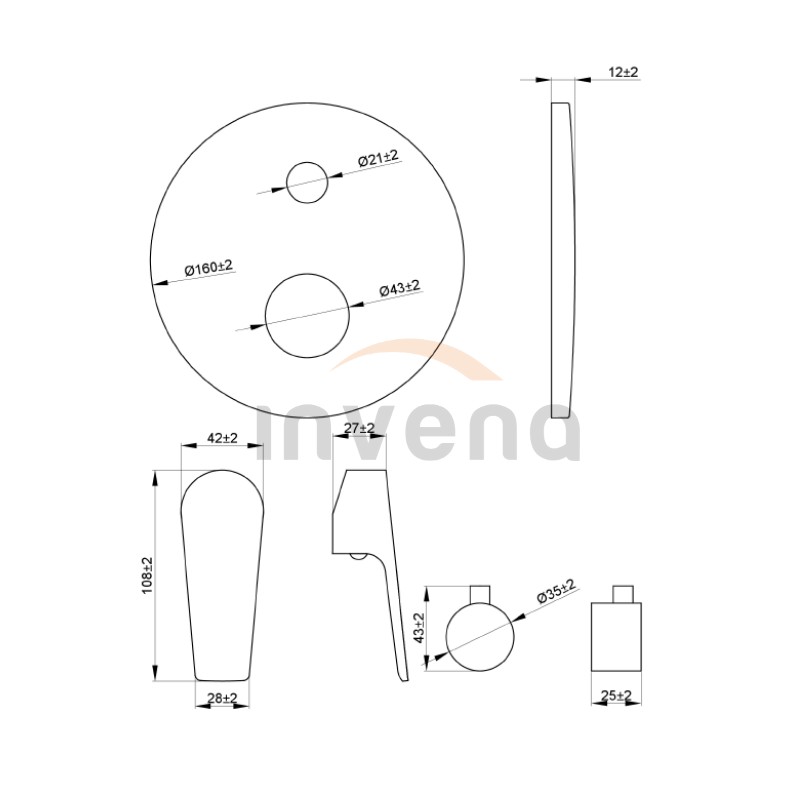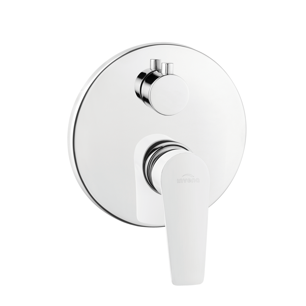 Podomítková baterie výrobce INVENA je vyrobena z mosazi a je potažena povrchovou úpravou, která zajistí, že baterie nebude reznout. Srdcem baterie je keramická kartuše 35 mm.