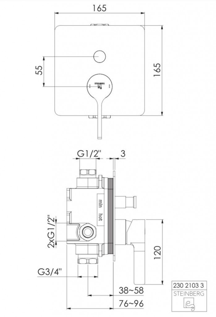 Vanová/sprchová baterie pod omítku, bez tělesa