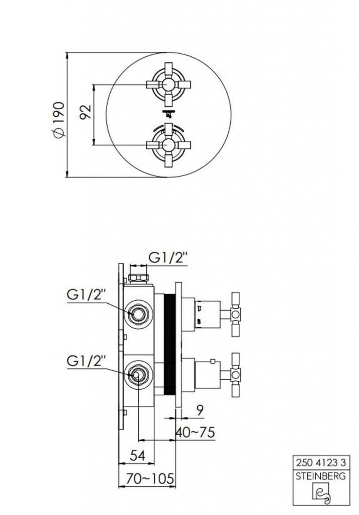 Sprchová termostatická baterie pod omítku, bez tělesa