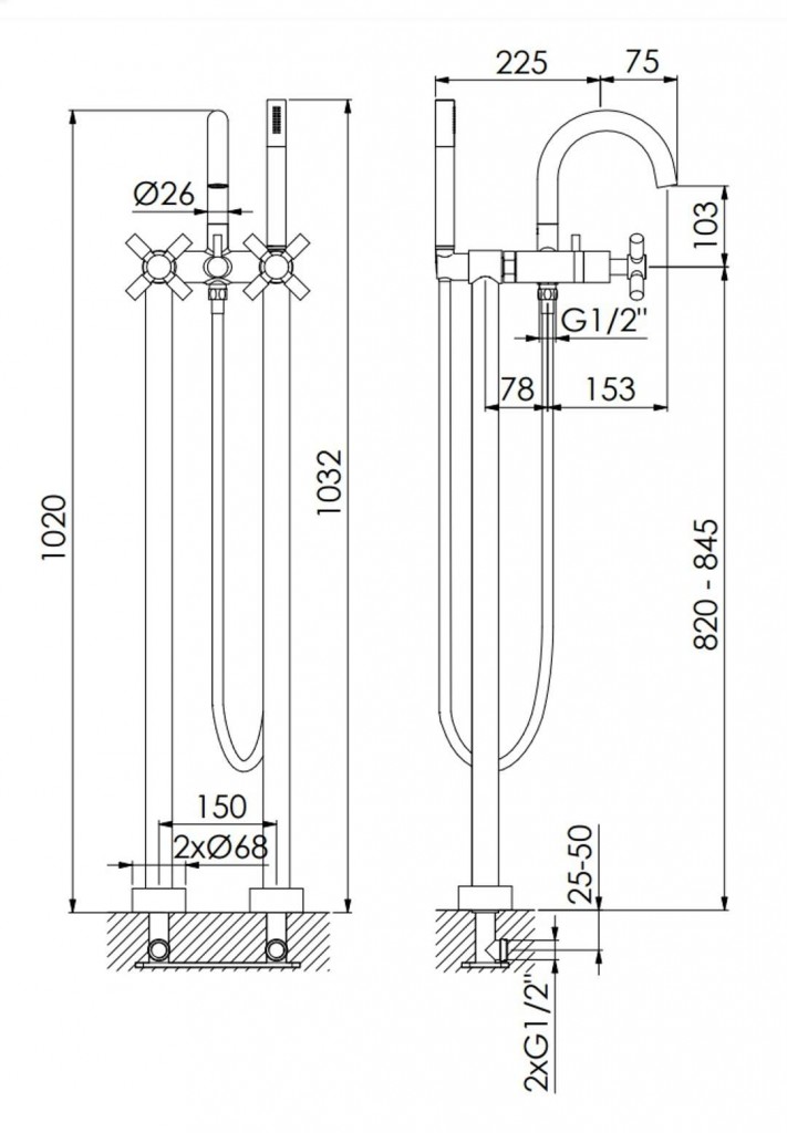 - s držákem sprchy, sprchovou hadicí 1500 mm a tyčovou ruční sprchou