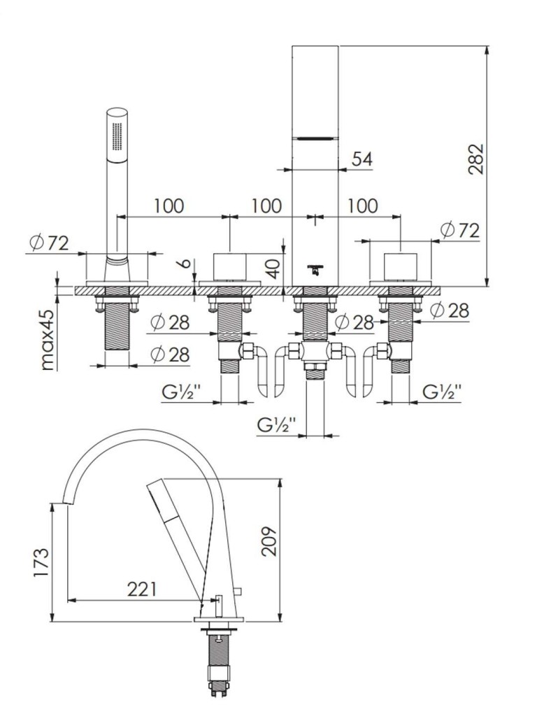 - průtoky 17,2 a 12,6 l/min (3 bar)