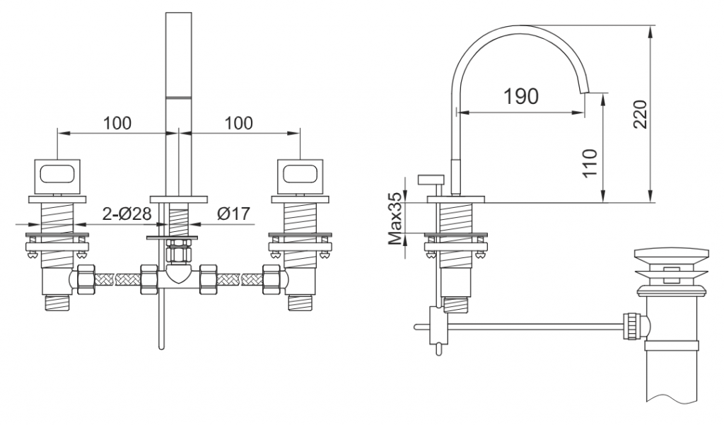 3-otvorová umyvadlová baterie série NEXEN je vyrobena z mosazi a opatřena keramickou kartuší. Je to typ vodovodní baterie, který vyžaduje tři otvory pro instalaci – jeden pro samotnou výtokovou hubici a dva pro ovládací prvky na teplou a studenou vodu. Tento design je často používán v tradičnějších nebo luxusnějších koupelnách, kde dodává estetickou hodnotu a poskytuje vyšší úroveň kontroly nad mícháním teplé a studené vody.