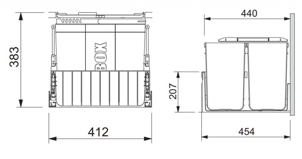 - součástí sorteru je plnovýsuv s tlumením, která zaručuje tichý dojezd