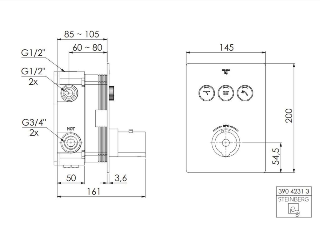 - hranatá nástěnná rozeta, 145 x 200 mm