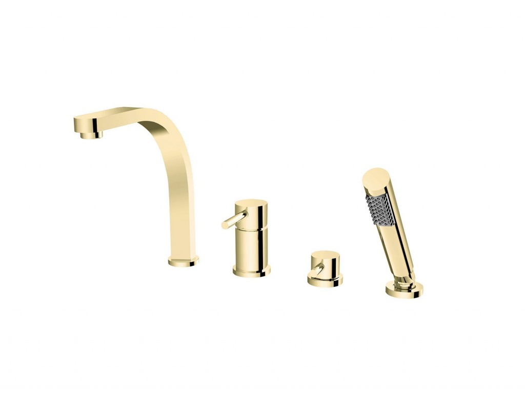 4 - otvorová vanová baterie DECCO z prvotřídního materiálu. Uvnitř baterie je keramická kartuše, ta se stará o dlouhou životnost a spolehlivost. Součástí balení je příslušenství pro vanové baterie - obsahuje: ruční sprchu, sprchovou hadici, sprchový držák, přepínač proudu, kohoutek a baterii. Určená k instalaci na okraj vany. Dodáváme v šesti barvách a to lesklý chrom, černá, grafitová, zlatá, zlatá lesklá, zlatá broušená.