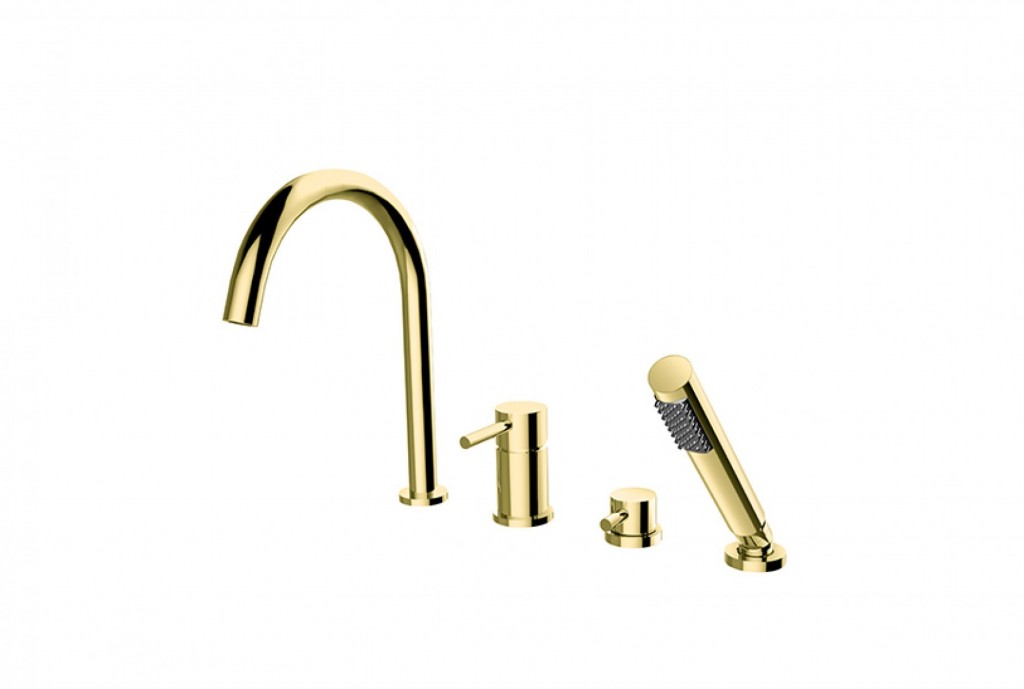 4 - otvorová vanová baterie ILLUSION z prvotřídního materiálu. Uvnitř baterie je keramická kartuše, ta se stará o dlouhou životnost a spolehlivost. Součástí balení je příslušenství pro vanové baterie - obsahuje: ruční sprchu, sprchovou hadici, sprchový držák, přepínač proudu, kohoutek a baterii. Určená k instalaci na okraj vany. Dodáváme ve třech barvách a to lesklý chrom, černá matná nebo zlatá.