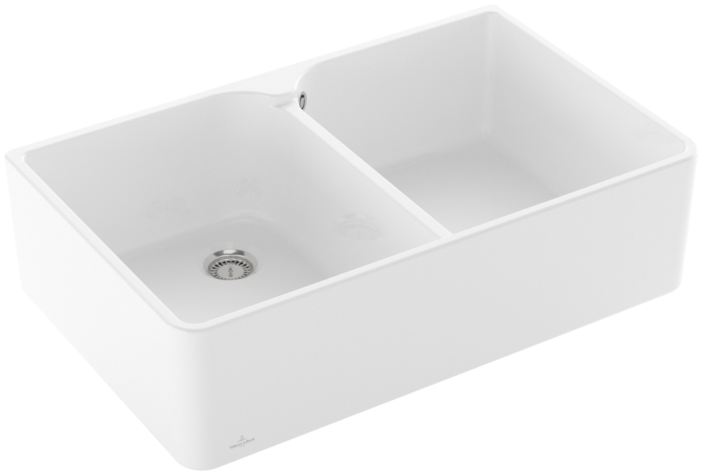 Keramický dřez Villeroy & Boch Farmhouse je vyroben z materiálu CeramicPlus, který zajišťuje vyjímečnou tvrdost, odolnost proti poškrábání nebo jinému poškození a také odolnost proti vysokým teplotám. Povrch je odolný proti cizím látkám a nečistotám, takže se výborně čistí a potraviny na něm nezanechávají žádné stopy. Materiál CeramicPlus je vyroben ze 100% přírodních materiálů, je barevně stálý a nepřijímá chutě ani zápachy, takže ja absolutně nezávadný pro potraviny.