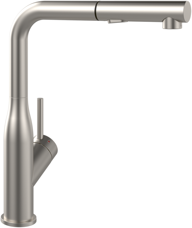Dřezová páková baterie s výsuvnou sprchou a přepínáním síly proudu, nerez mat, materiál masivní nerez, kartuše s keramickým těsněním
