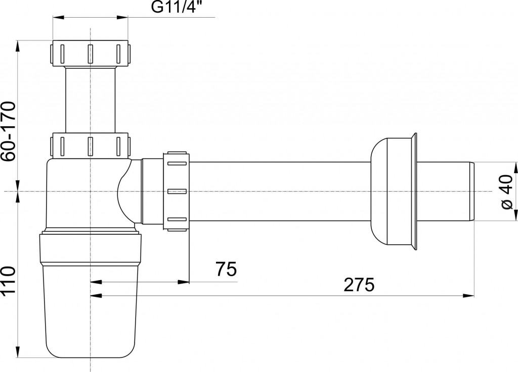 Sifon se závitem 5/4“. Průměr odpadu 40 mm.