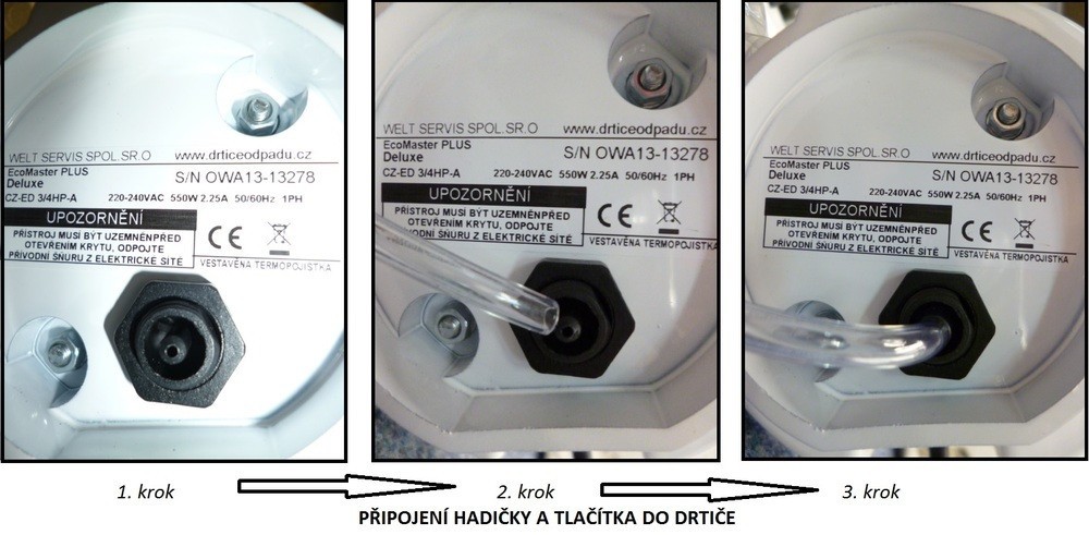 Hadička pneuspínače je určena k připojení přímo do drtiče případně u starších modelů do krabice pneu spínače. Spolu s tlačítkem slouží k ovládání drtiče.