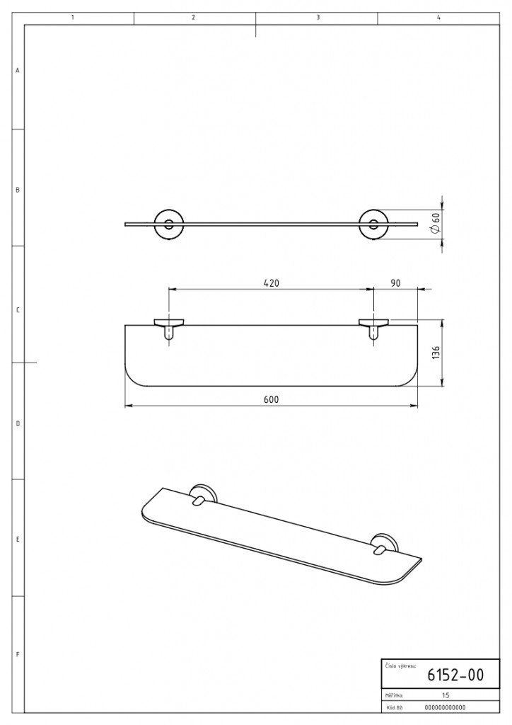 Rozměr skla poličky 125 x 600 mm.Sklo čiré.