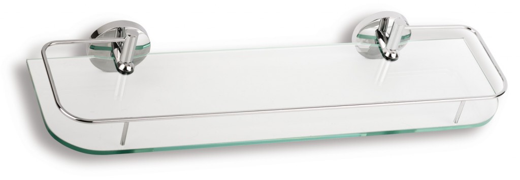 Rozměr skla poličky 125 x 450 mm. Sklo čiré, síla skla 6 mm, výška zábradlí 30 mm.Tento výrobek nedoporučujeme lepit.