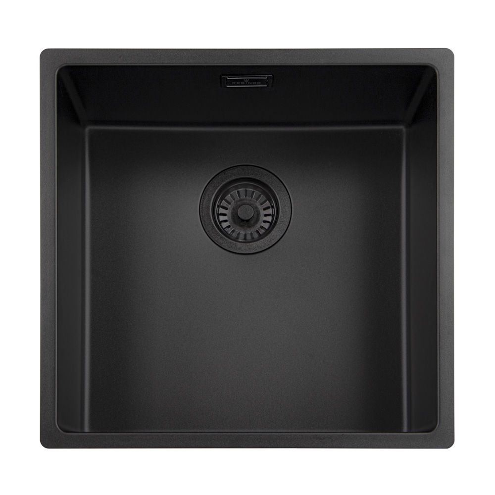 Nerezový dřez 40x40 cm, černý povrch Jet Black, montáž horní / do roviny / spodní