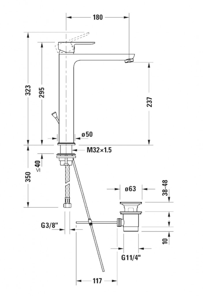 - s odtokovou soupravou ovládanou táhlem