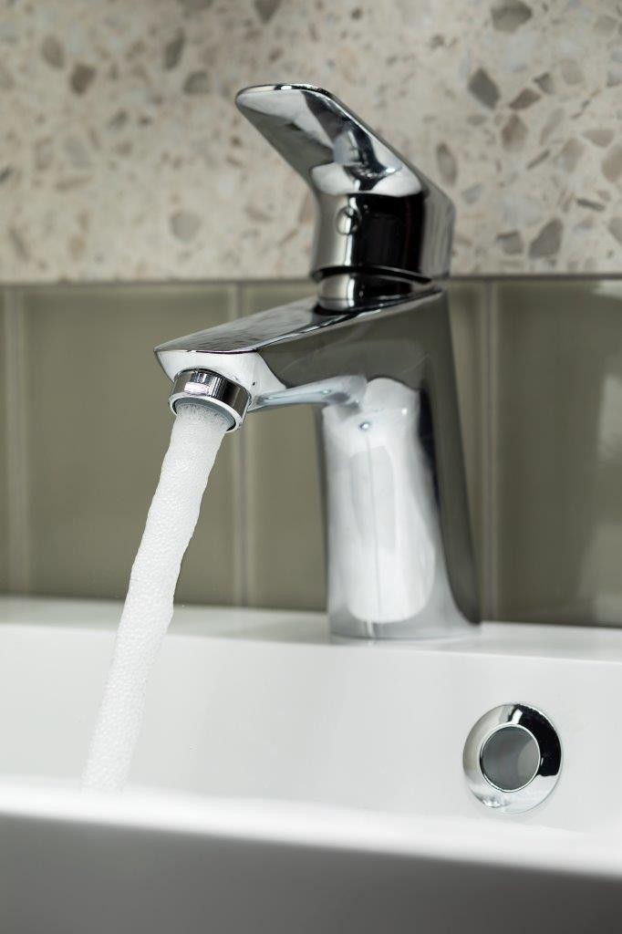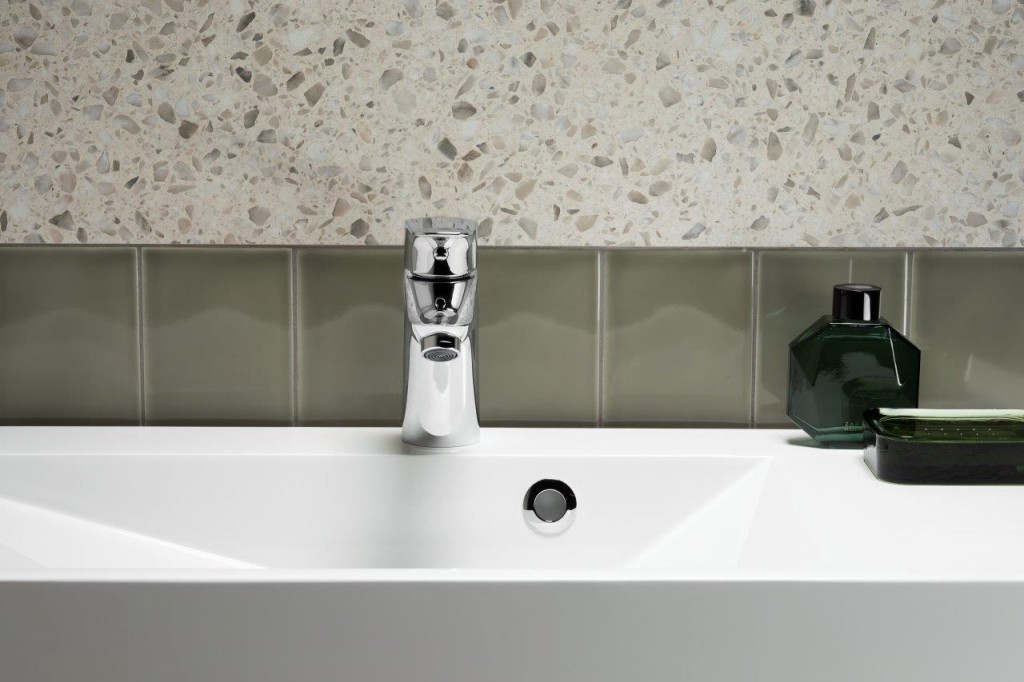 Umyvadlovou baterii ABASHA si zamilujete. Pohodlně ji namontujete přímo na umyvadlo a díky její menší výšce 14,8 cm nebude voda nepříjemně odstříkávat do prostoru. Proud vody teče směrem od baterie, což vám poskytne dostatek místa pro pohodlné mytí rukou.