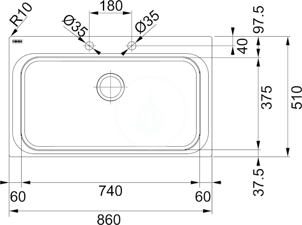Dřez AEX 610, bez odkapávací plochy
